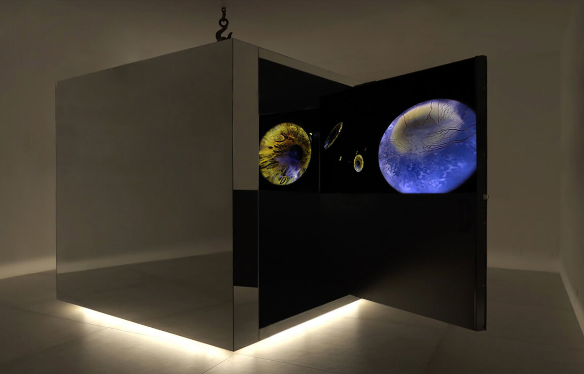 [...] In the beginning, there was the cube—an audacious yet fitting symbol of geometry, representing the very essence of place, of the spaces where we have always stood with our feet firmly grounded, gazing at the sky. Through time, everything and everyone has been transformed, from Narcissus's first encounter with the mirror of water, to those who, despite witnessing many sunsets, continue to trust in the dawn, in the return of light. For no one can exist without it, even if they cannot see it with their own eyes. It is the energy of the seasons, the chlorophyll of trees, life as a dream by day, and the dream as life by night. It is to these things, to all that we have seen, that we see, and that we will see, that the original unity of the one/all and the all/one is woven, each of us carrying our own fragment to construct an endless tonal, rhythmic scale. Every artistic creation, every scientific discovery, is an event already inscribed within the universal order and the molecular secrets, blending the good with the beautiful, the genius with the virtues of intellect—multiplicity and originality—born from a culture of knowledge and will, seated together upon the shared throne of the imagination. Hic et nunc, like a vast mirror cube, a symbol of the ancient and the natural on the outside, while within, the magic of the visible becoming invisible and the invisible becoming visible unfolds, exploring mysteries and virtues, the joys of art, and the ethical and aesthetic multitudes. [...]Francesco Gallo Mazzeo